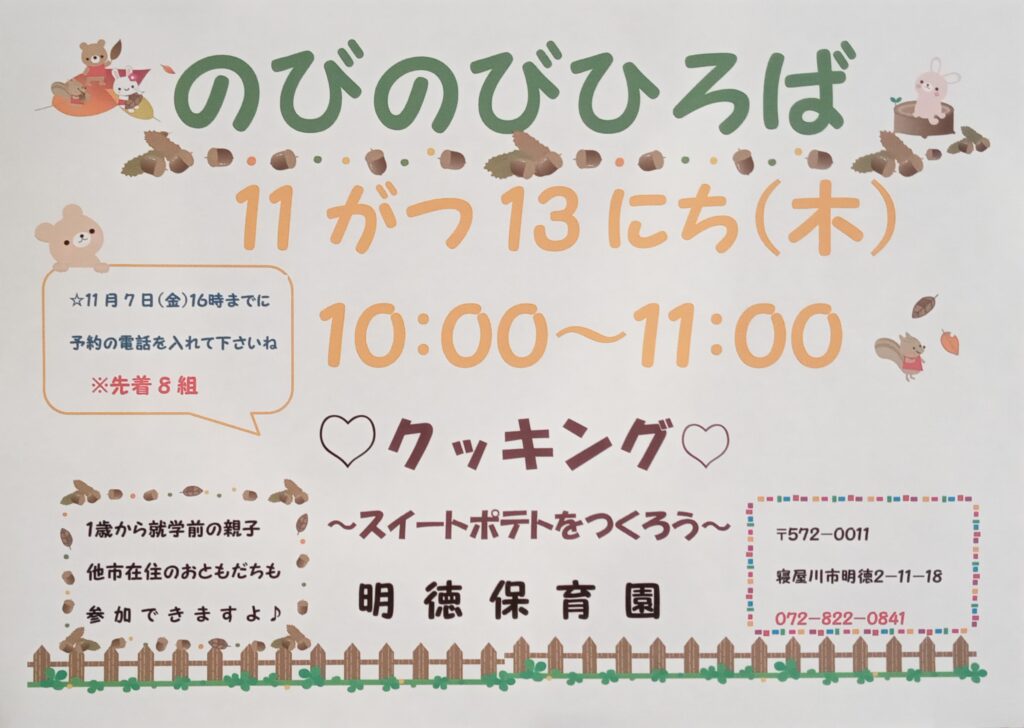 11月の「のびのびひろば」は、『💛クッキング💛』です。